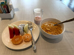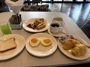朝食のビュッフェ、まあ、これもほぼ毎日同じになってしまうのはやむを得ないのかな~